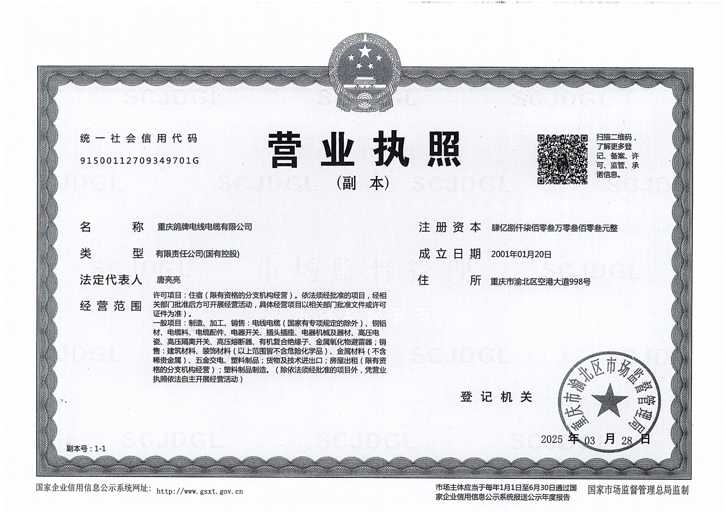 重慶鴿牌電線電纜有限公司,隸屬于港交所上市的重慶機電股份有限公司,系全國電線電纜行業重點國有控股企業。公司始建于1956年,60多年專注于電線、電纜、銅型材、高壓電瓷、塑膠管材的研發(fā)和生產,一直致力于打造水電一體化產品結構,為國際國內航天航空、軌道交通、發(fā)電機組、輸配電工程配套及家裝系列提供了安全、節(jié)能、環(huán)保產品和優(yōu)質服務。